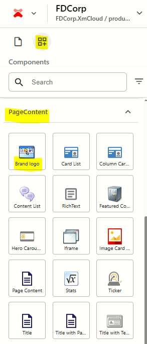 - Click on the Brand Logo component to select it and display the Brand Logo configuration options on the right