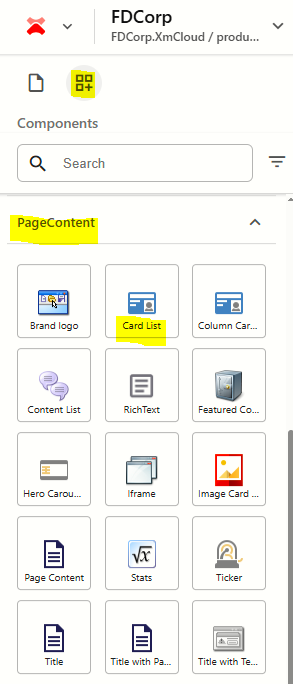 - Click on the Card List component on the page to select it
