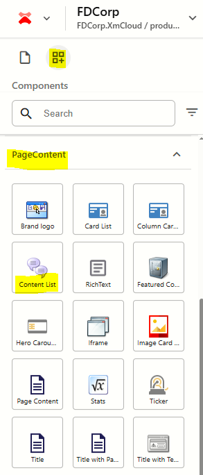 From the Components panel, drag and drop the Page Content > Content List component into a container on the page.